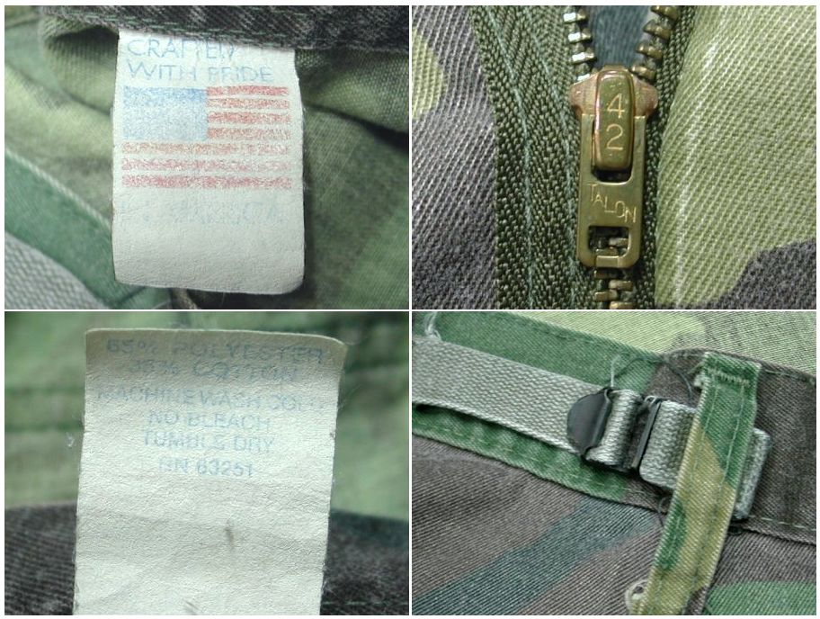 1980年代製 ウッドランドカモ ベイカーパンツです。MADE IN USA ジッパーはTALON42製 素材はポリエステル65% コットン35%になります。着用感はありますが、特に目立ったダメージはありません。