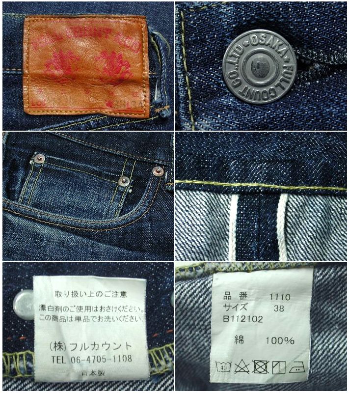 フルカウント Lot,1110 テーパード ジーンズです。MADE IN JAPAN 着用感はありますが、特に目立ったダメージはありません。