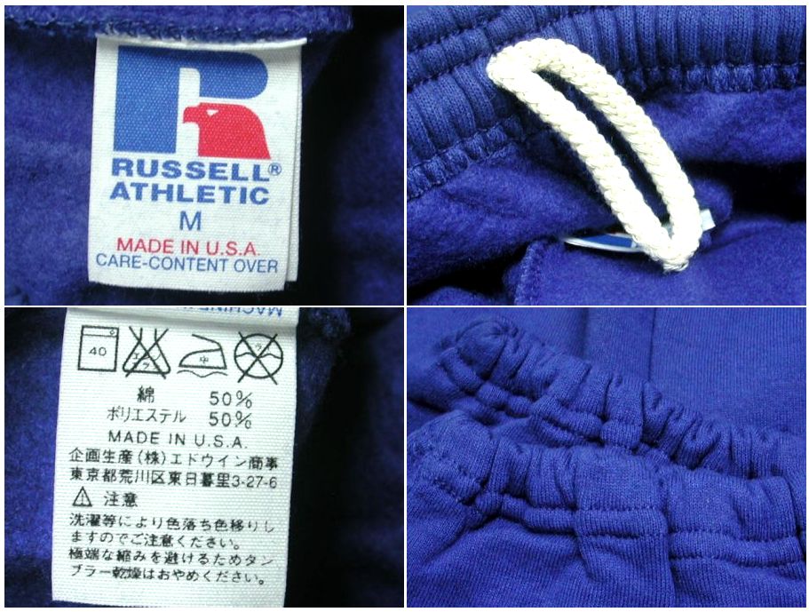 1990年代製 ラッセル スウエットパンツです。MADE IN USA カラーはブルーで素材はコットン50% ポリエステル50%になります。状態はデッドストックです。