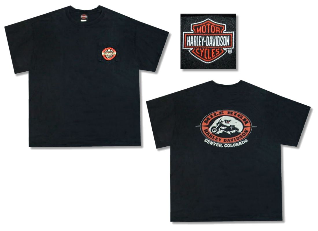 ハーレーダビッドソン ポケットTシャツです。カラーはブラックで素材はコットン100%になります。着用感はありますが、特に目立ったダメージはありません。