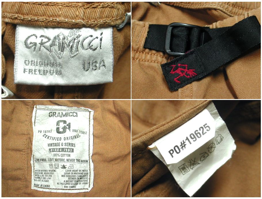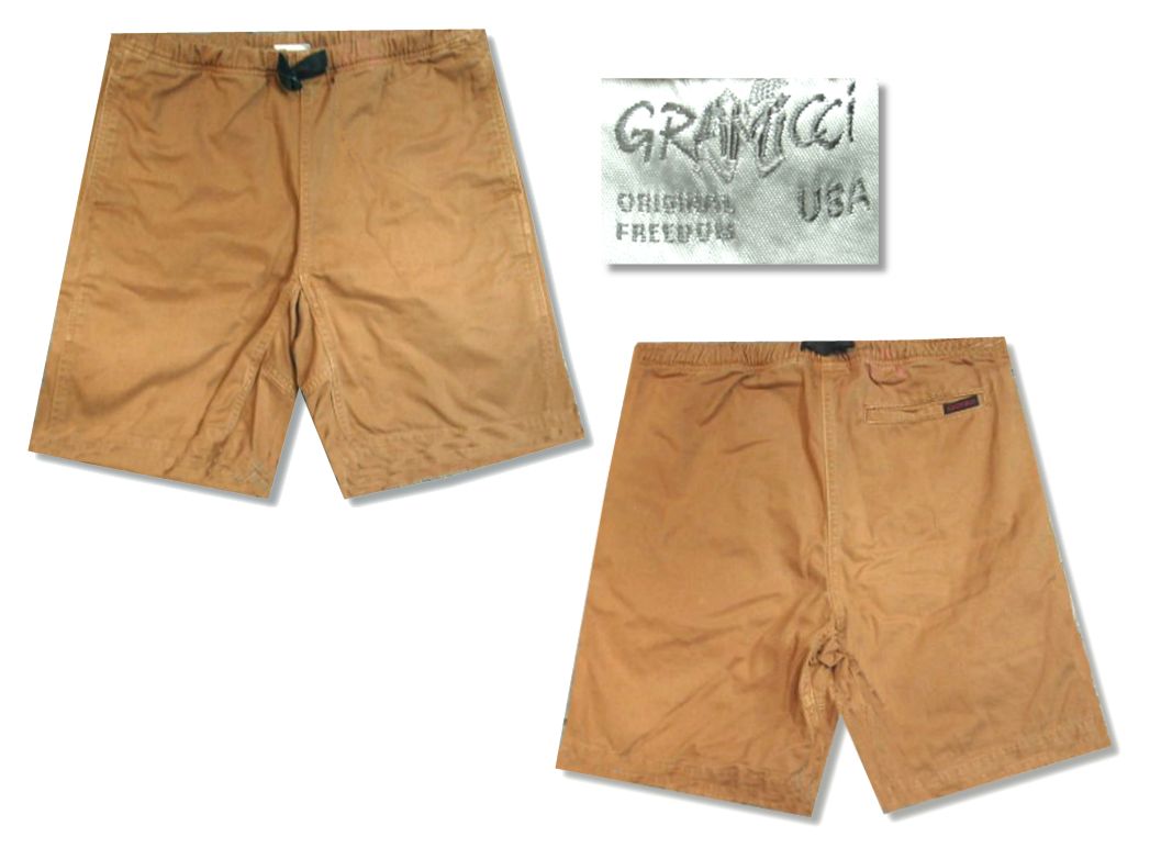 グラミチ クライミングショーツです。カラーはブラウンで素材はコットン100%になります。着用感はありますが、特に目立ったダメージはありません。