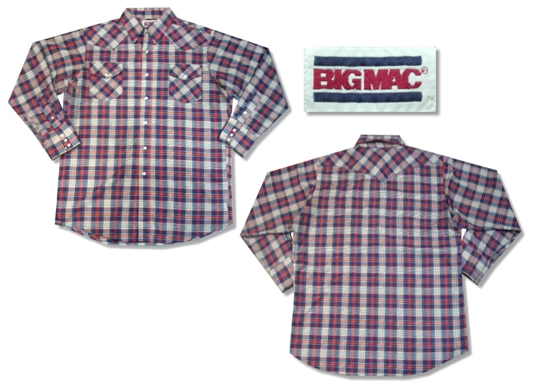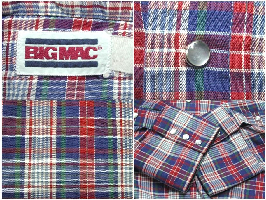 1990年代製 BIGMAC ウエスタンシャツです。MADE IN USA 素材はコットン35% ポリエステル65%になります。着用感はありますが、特に目立ったダメージはありません。