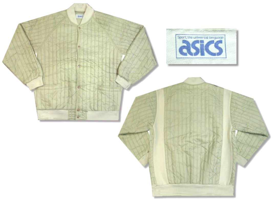 1980年代製 オールド アシックス ナイロンジャケットです。カラーはベージュで素材はナイロン100%になります。着用感はありますが、特に目立ったダメージはありません。