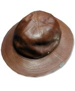 ミスターファットマン レザー ファティーグハットです。MADE IN JAPAN USアーミーに支給されていたファティーグハットをレザーで表現されたモデルです。カラーはブラウンで、素材はフルベジタブルタンニングのイタリアンホースレザーです。状態は良好で特に目立ったダメージはありません。