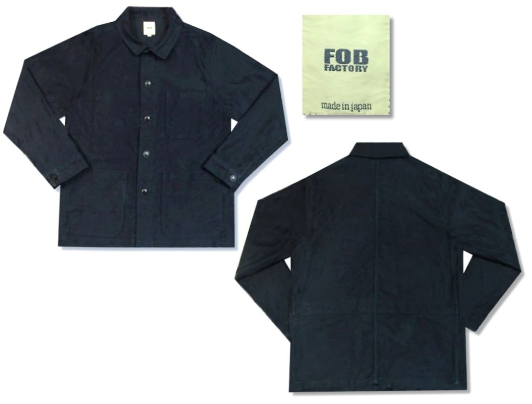 FOB FACTORY フレンチ モールスキン ワークジャケットです。MADE IN JAPAN カラーはネイビーで素材はコットン100%になります。着用感はありますが、特に目立ったダメージはありません。