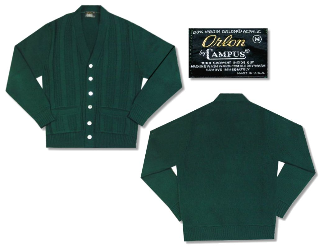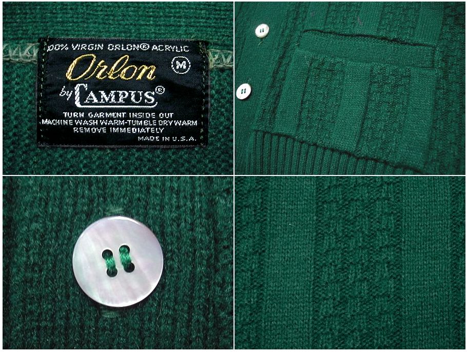 VINTAGE 1960年代製 Campus カーディガンです。MADE IN USA カラーは深緑で素材はアクリル100%になります。状態は良好で特に目立ったダメージはありません。