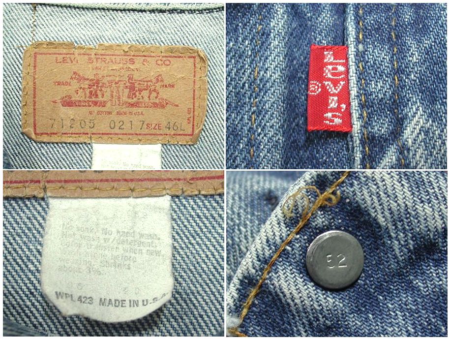 1970年代製 Levi's 71205-0217 デニムジャケットです。MADE IN USA ボタン裏の刻印は52 着用感はありますが、特に目立ったダメージはありません。