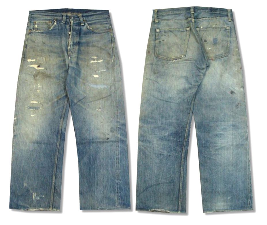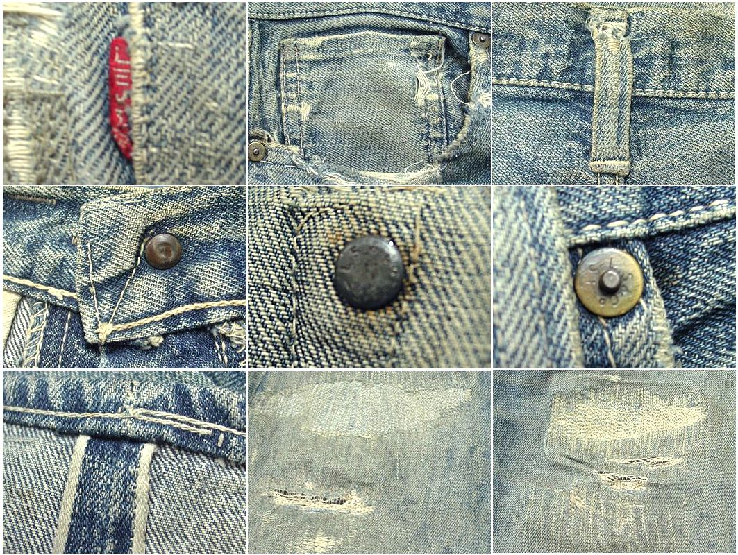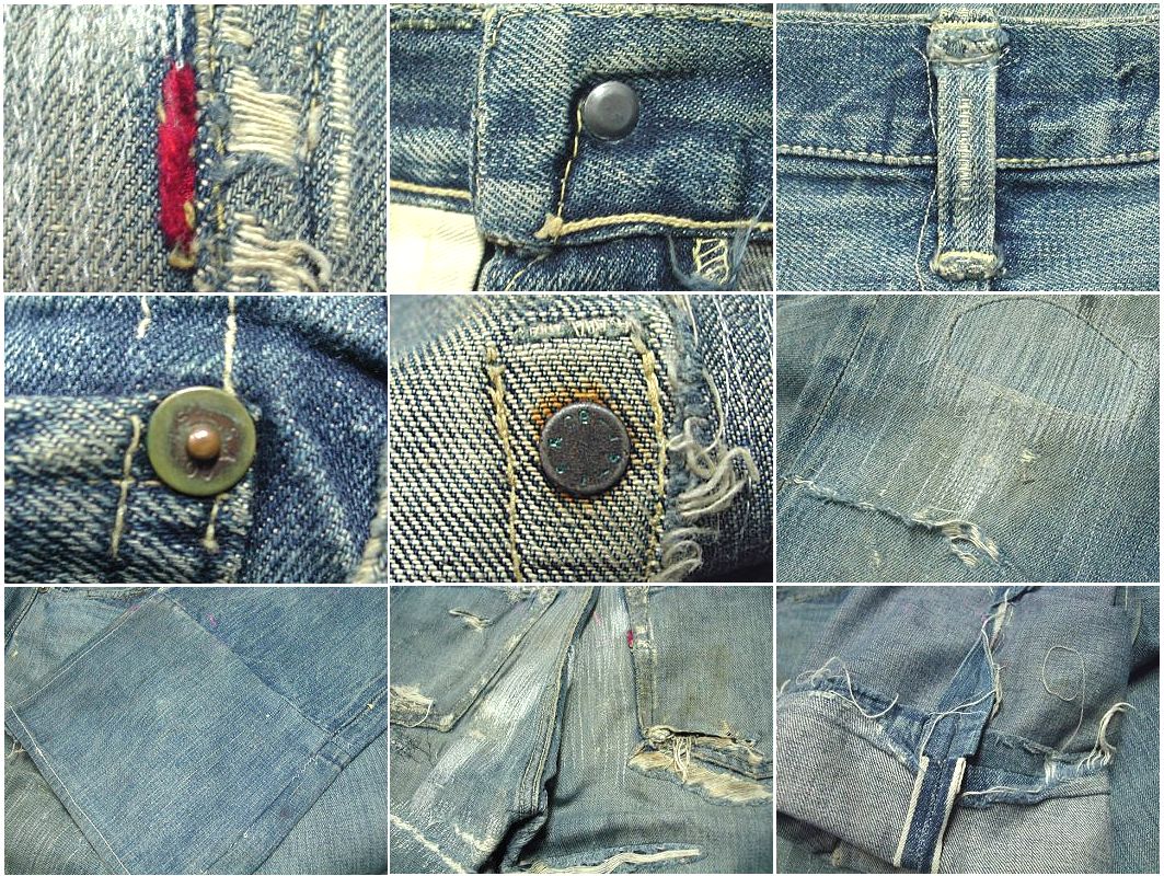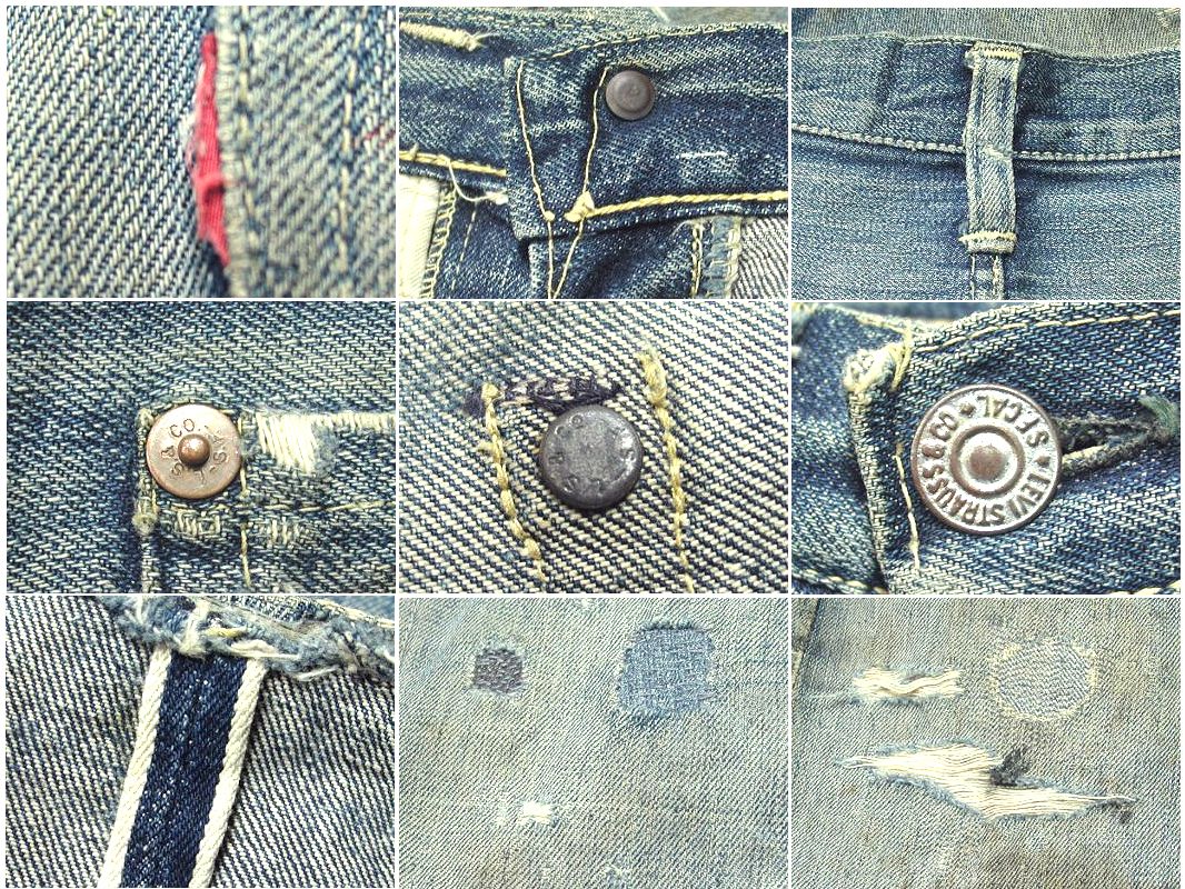 IN USA トップボタンはドーナツボタンではありませんが、コインポケットにリベットが無いので最終の大戦モデルになります。片タブ 革パッチ センターループ リベット刻印が中央寄り Vステッチ トーム型の隠しリベット 全体的にリペアが多数有りますが、しっかりリペアしてありますので着用には問題ありません。