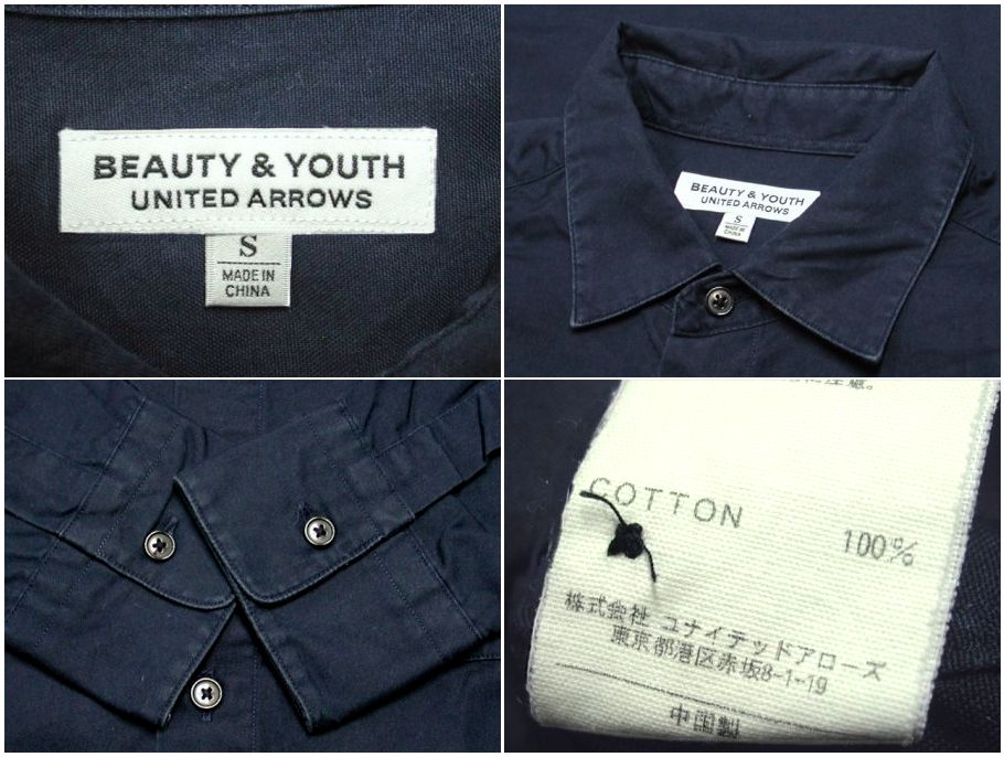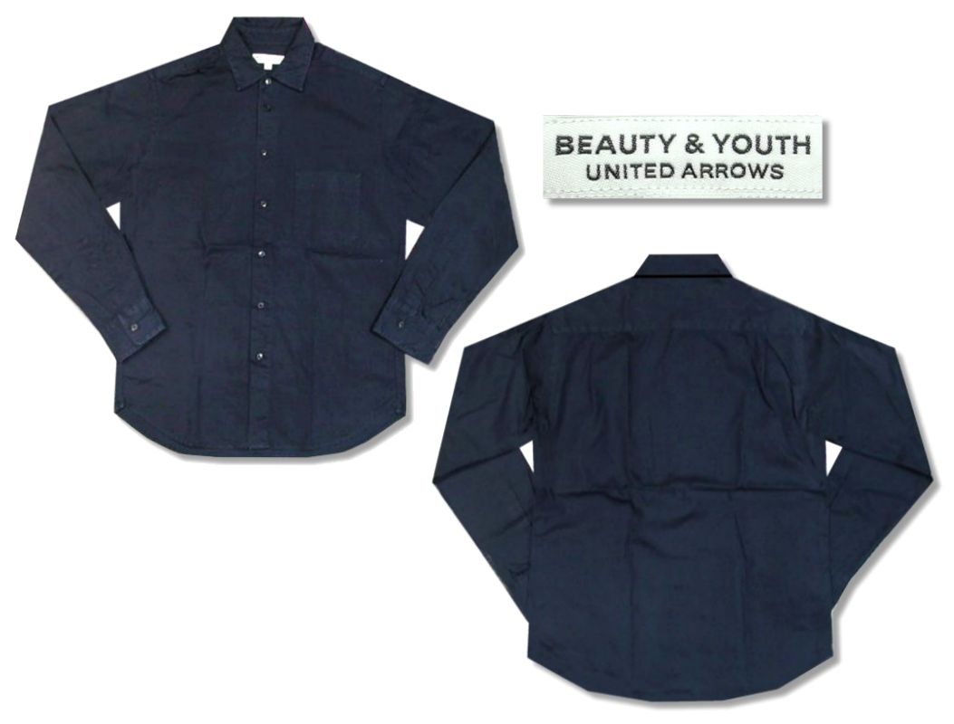 ユナイテッドアローズ ビューティー&ユース シャツです。カラーはネイビーで素材はコットン100%になります。着用感はありますが、特に目立ったダメージはありません。