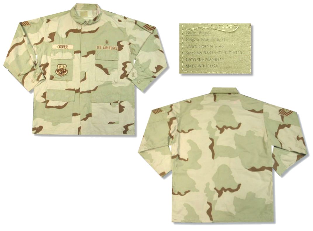 1990年代製 US AIR FOECE デザートカモ フィールドシャツです。SPO100-99-D-0345 RIPSTOP 素材はコットン50%