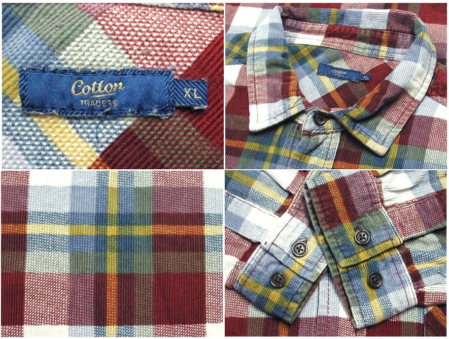 コーデュロイシャツです。素材はコットン100%になります。着用感はありますが、特に目立ったダメージはありません。