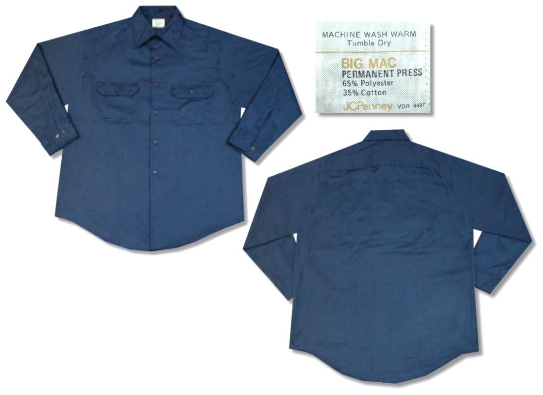 1970年代製 BIGMAC ワークシャツです。MADE IN USA カラーはネイビーで素材はコットン35% ポリエステル65%になります。着用感はありますが、特に目立ったダメージはありません。