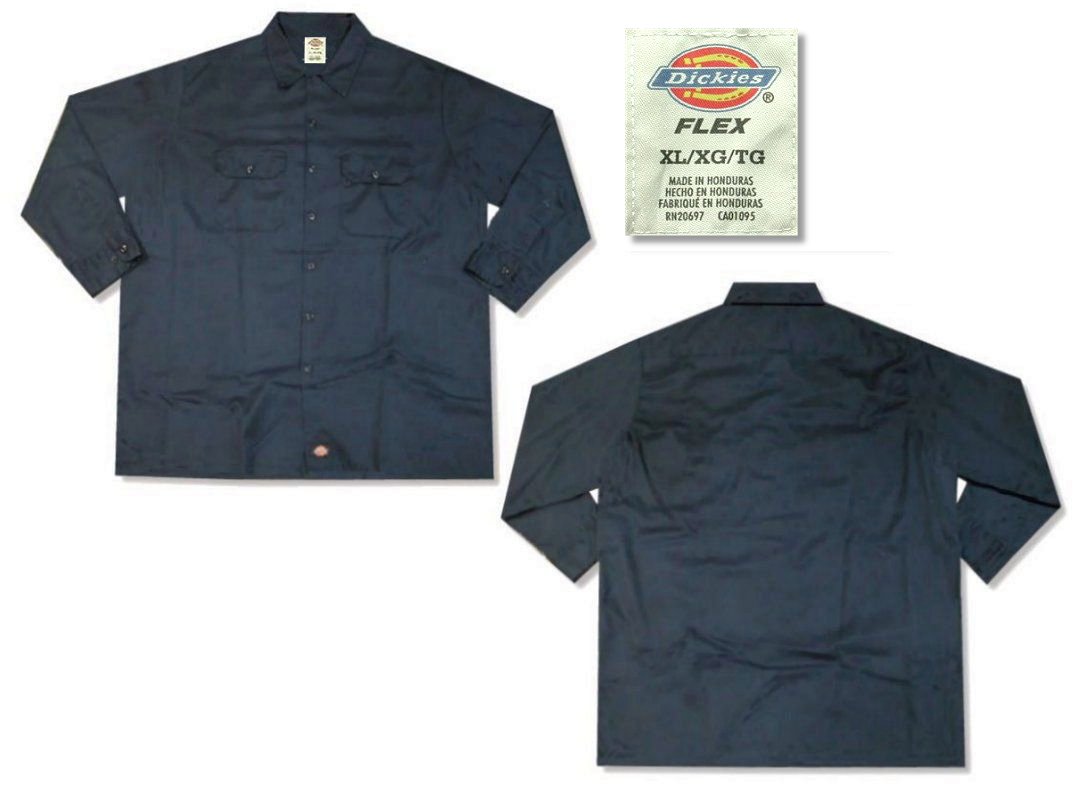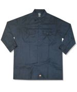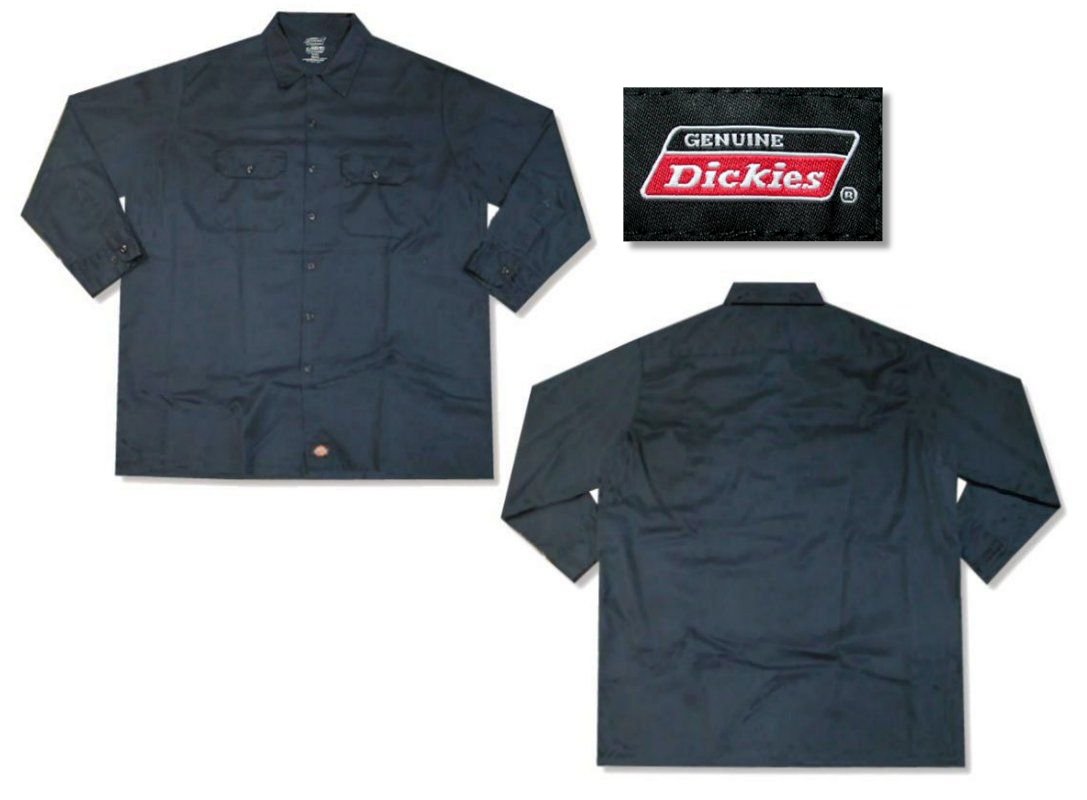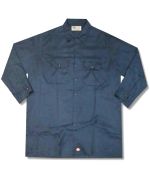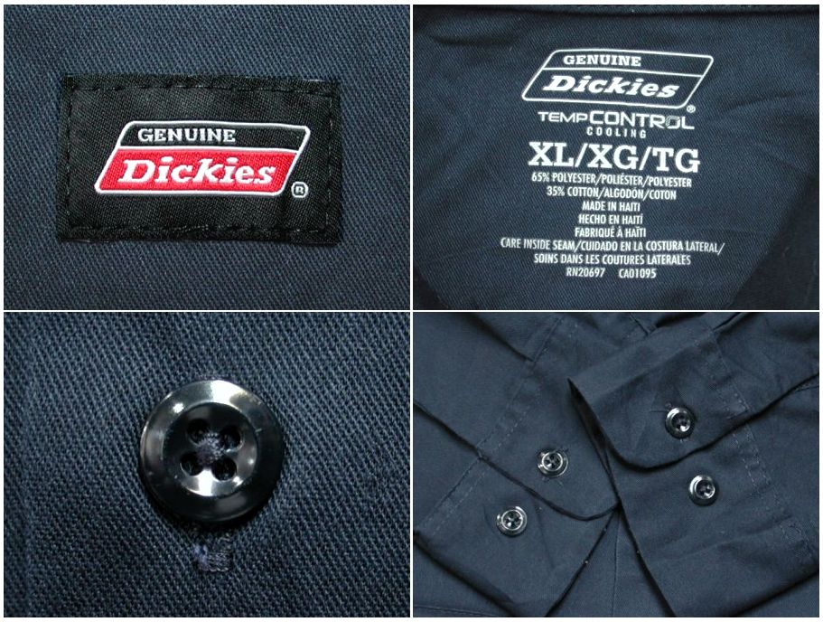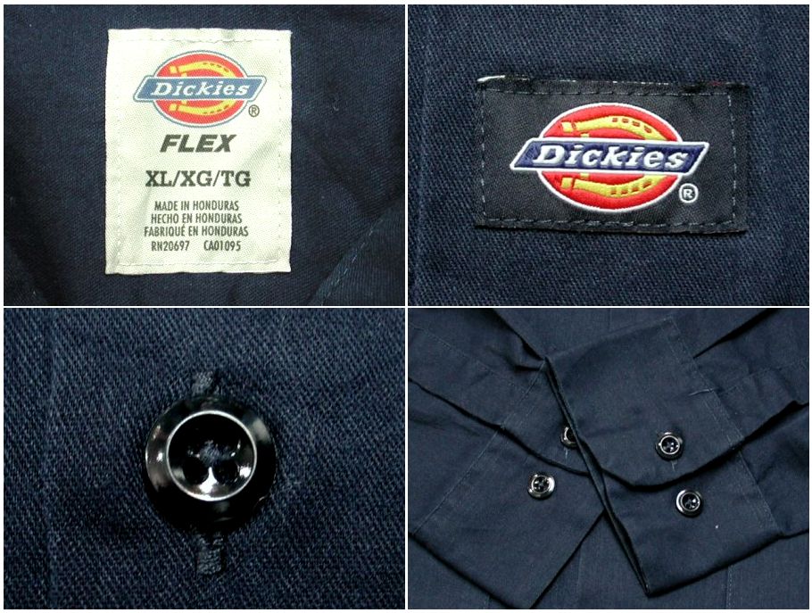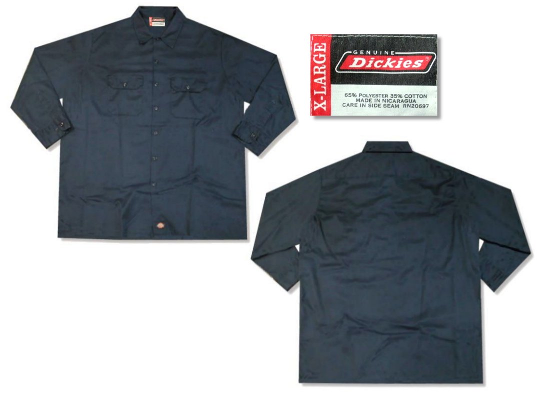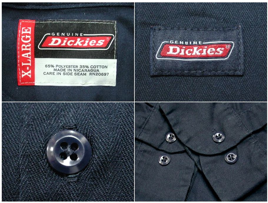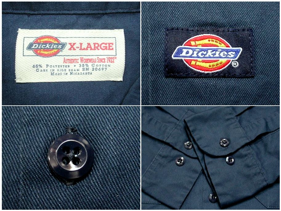 ディッキーズ ワークシャツです。カラーはネイビーで素材はコットン35% ポリエステル65%になります。着用感はありますが、特に目立ったダメージはありません。