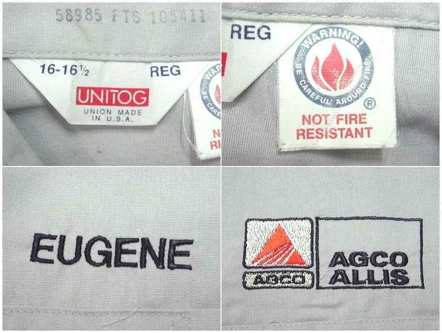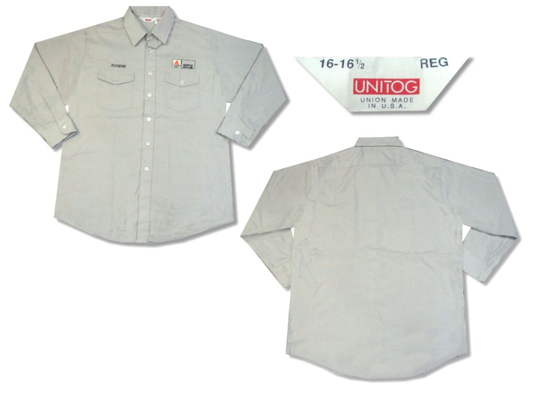 1980年代製 UNITOG ワークシャツです。MADE IN USA カラーはグレーで素材はコットン35% ポリエステル65%になります。着用感はありますが、特に目立ったダメージはありません。
