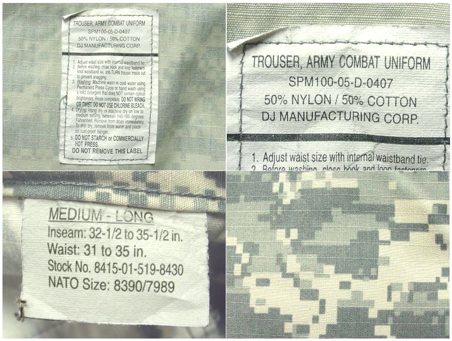2005年製 US ARMY デジタルカモ フィールドパンツです。SPM100-05-D-0407 素材はコットン50% ナイロン50%になります。着用感はありますが、特に目立ったダメージはありません。