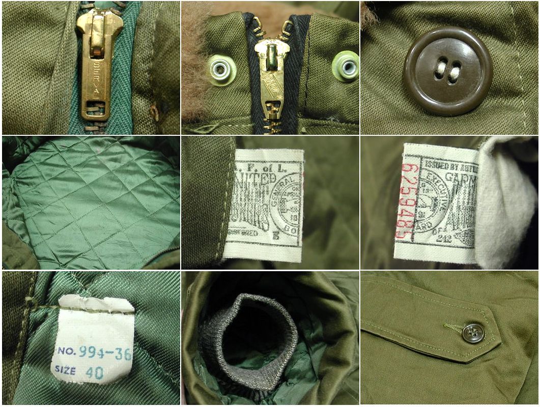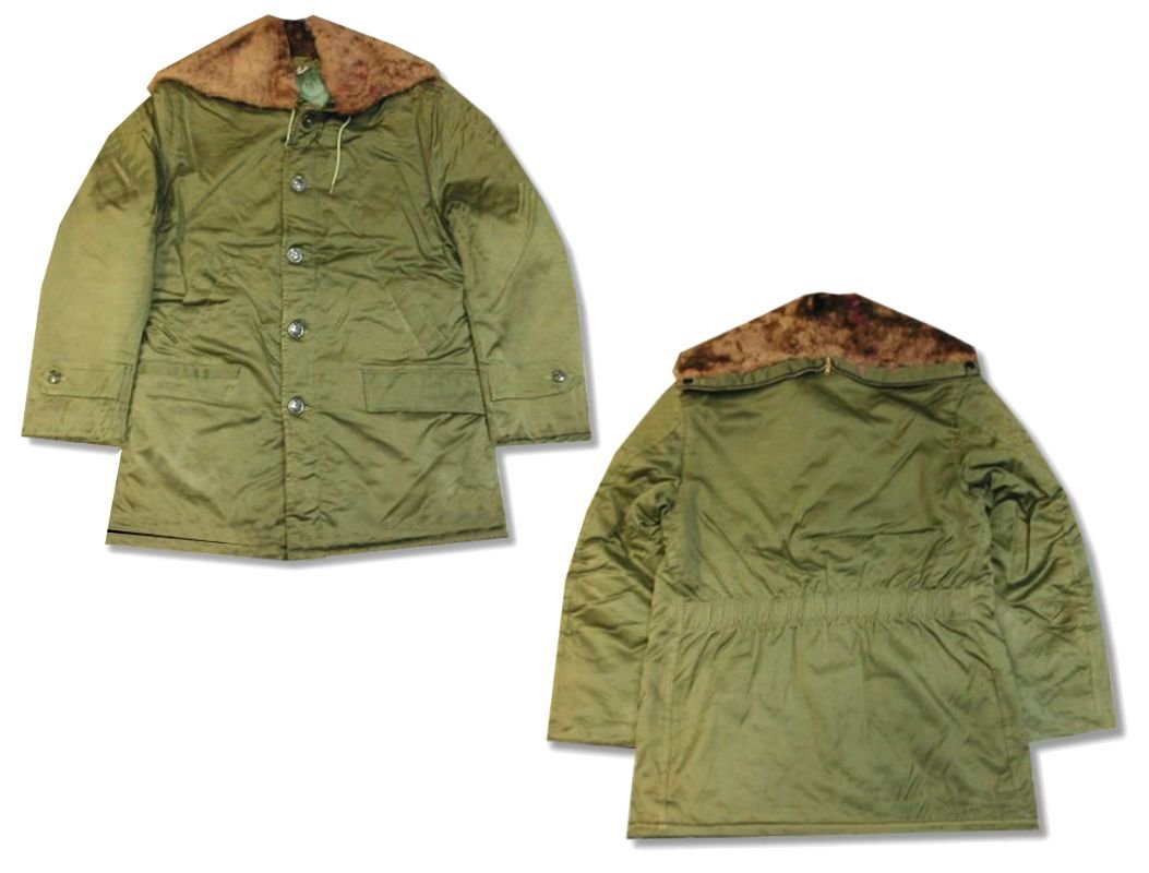 パーカーです。MIL-0-1952 山岳部隊のマウンテンパーカーを受け継いでおり、着脱可能なパイルライナーが完備しております。数カ所小さいリペアとフロントジッパーの爪部分を付け替えておりますが、雰囲気良く特に目立った大きなダメージはありません。フィッシュテールに変更される前のフード一体型で希少な1枚です。サイズ表記はSですが、普段Mサイズを着用している方に丁度いいサイズ感です。