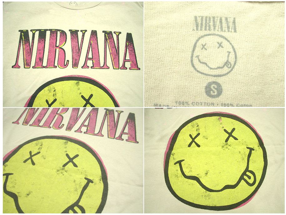 ニルヴァーナ Tシャツです。カラーはベージュで素材はコットン100%になります。着用感はありますが、特に目立ったダメージはありません。