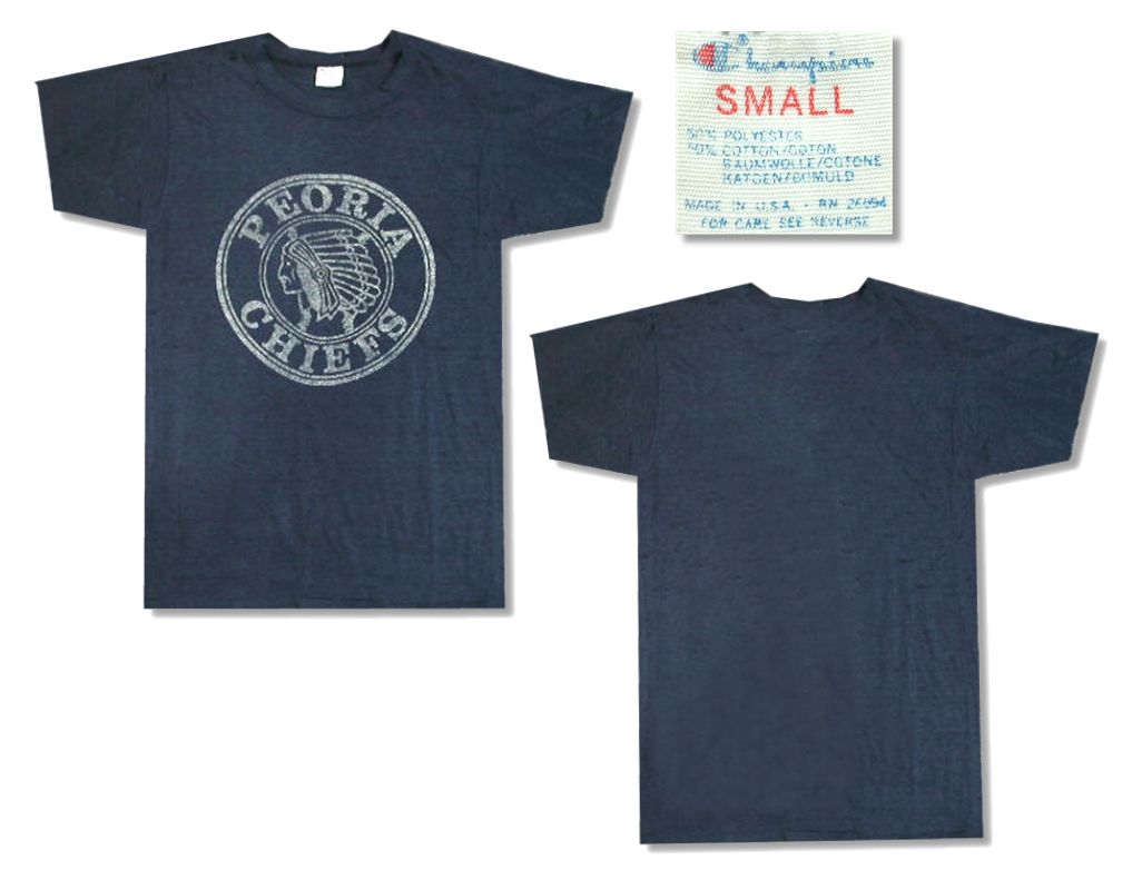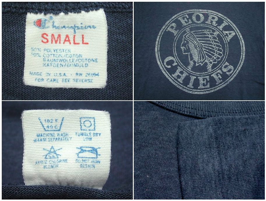 1980年代製 チャンピオン オールドTシャツです。MADE IN USA シングルスチッチ カラーはネイビーで素材はコットン50% ポリエステル50%になります。着用感はありますが、特に目立ったダメージはありません。