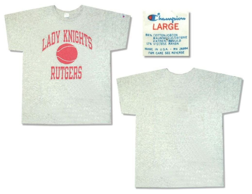 1980年代製 チャンピオン LADY KNIGHTS RUTGERS 3段染込プリント Tシャツです。MADE IN USA シングルステッチ カラーはグレーの霜降りで素材はコットン88%
