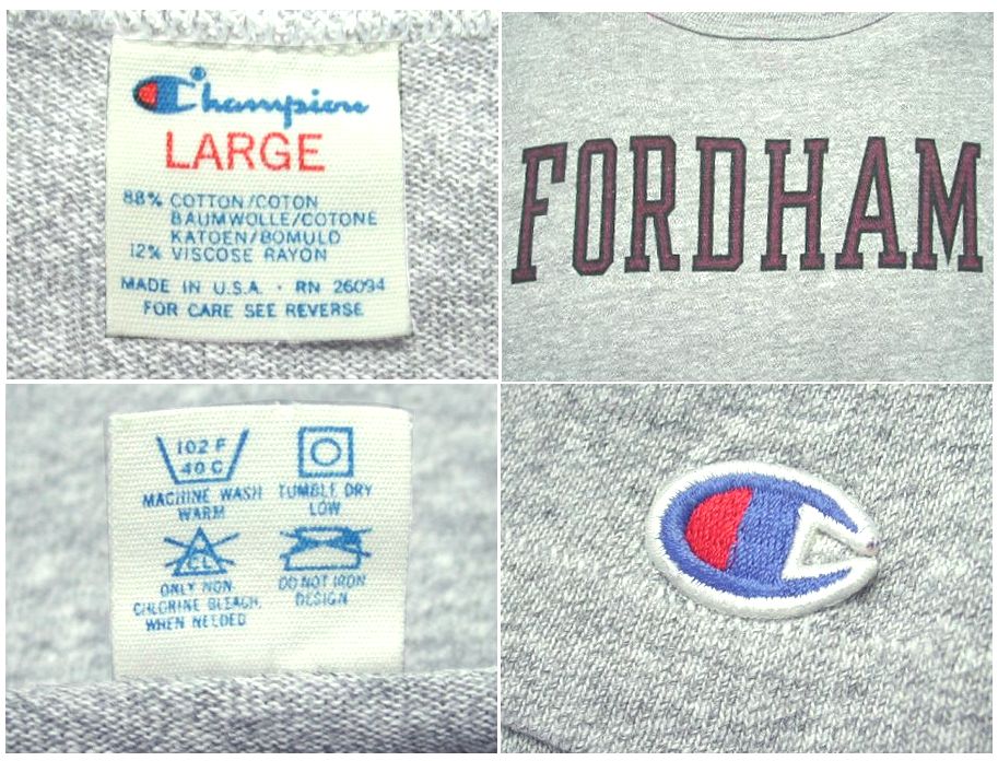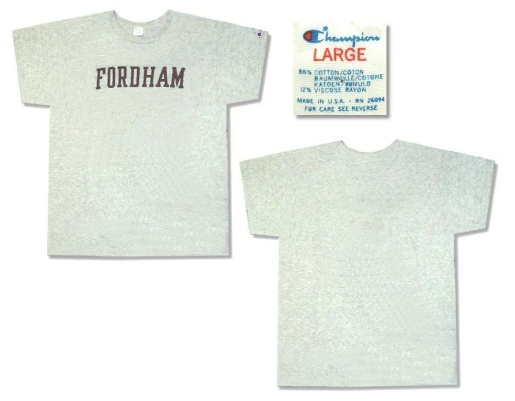1980年代製 チャンピオン トリコタグ フォーダム大学 染込プリント Tシャツです。MADE IN USA シングルステッチ カラーはグレーの霜降りで素材はコットン88%