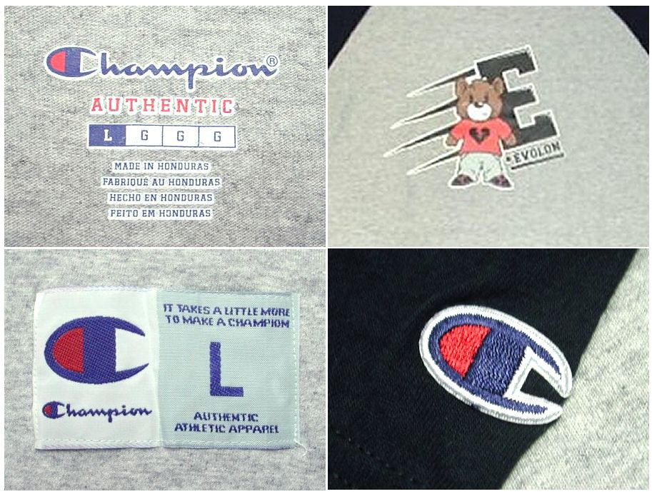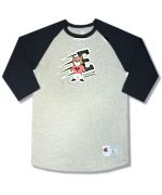 チャンピオン 七分袖 Tシャツです。カラーはブラック×グレーで素材はコットン90% ポリエステル10%になります。着用感はありますが、特に目立ったダメージはありません。